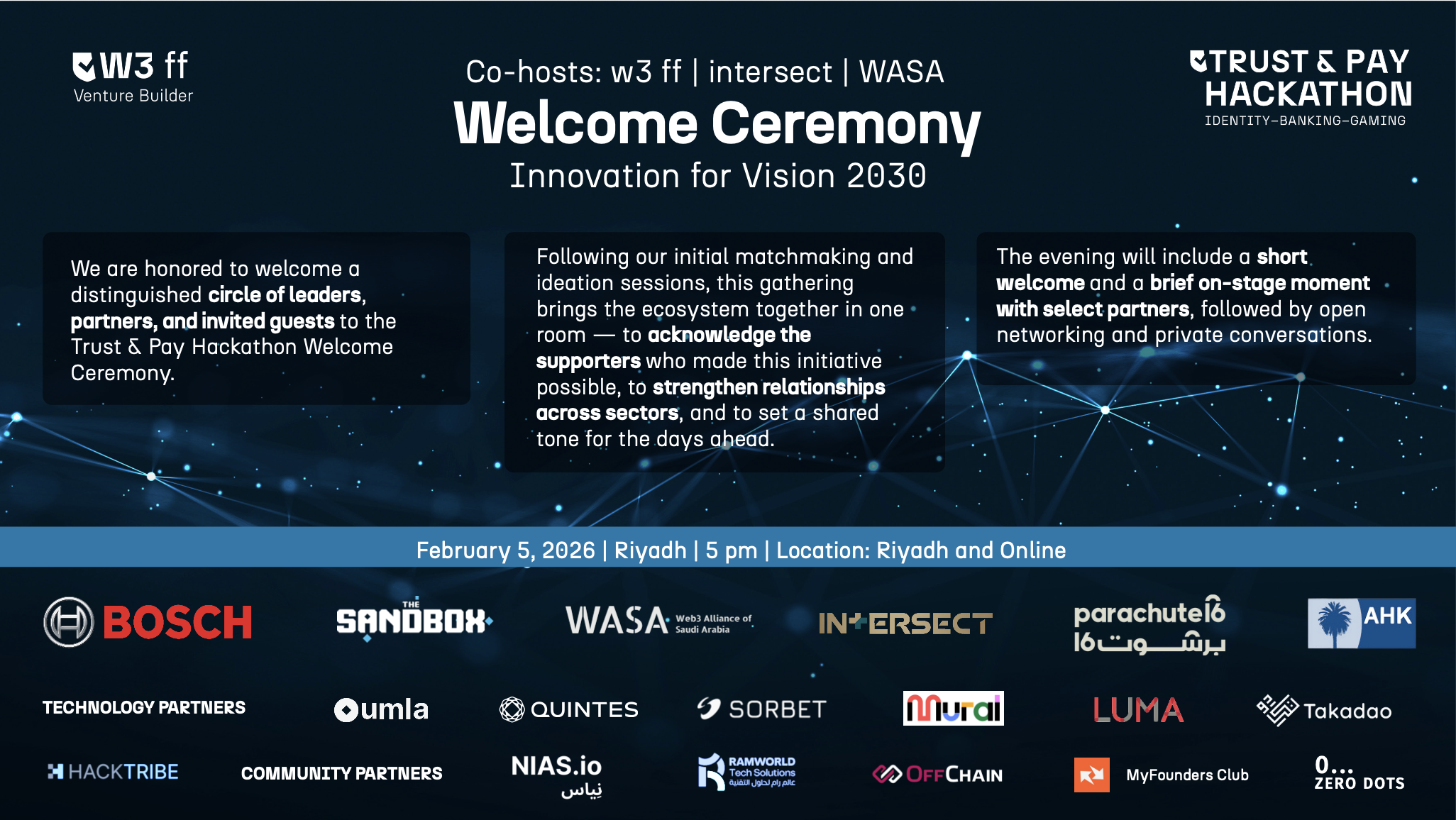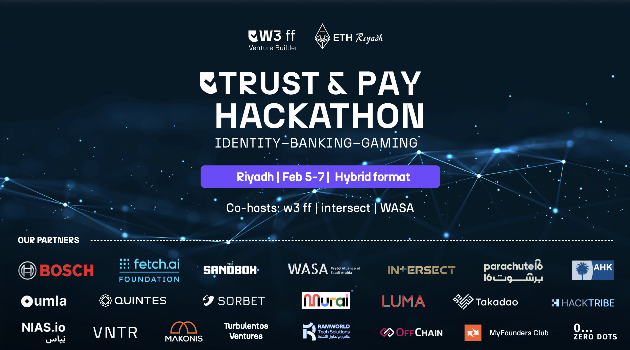 Hosted by w3 ff and WASA in partnership with ETHRiyadh, the Trust & Play Hackathon is a hybrid event where global talents come together to reimagine digital trust. Through storytelling, creativity, and concept-building, we’ll shape new ways of interacting with finance, culture, and technology.